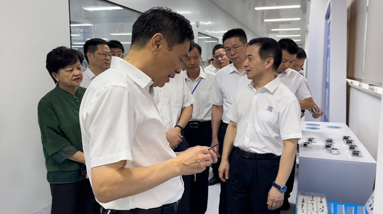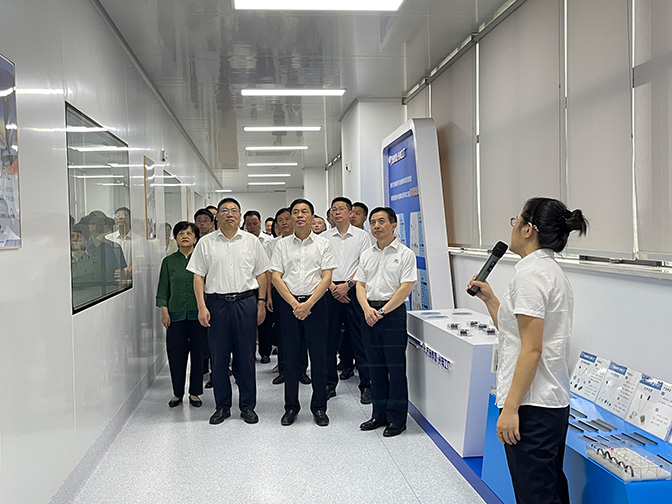 参会领导一来到QM球盟会电气,就深入企业生产一线,了解生产经营和重点项目落地情况。在QM球盟会集团光电工厂,QM球盟会电气董事长、总经理赵世运首先汇报了公司在立项争资、技改提能方面开展的工作和取得的成效,并陪同领导现场参观了红外光电子元器件智能化生产线。