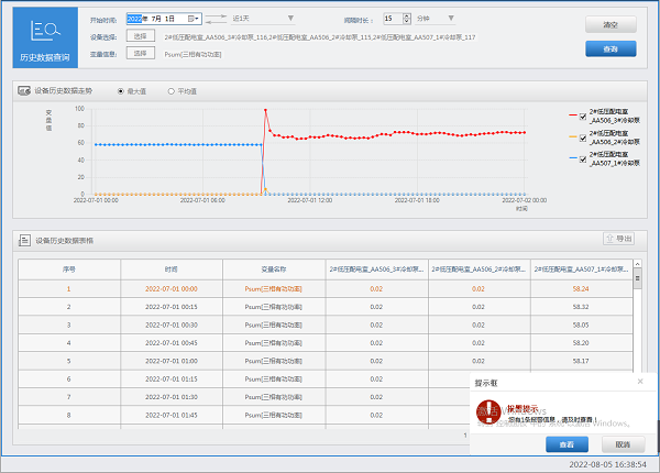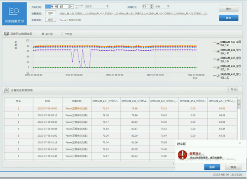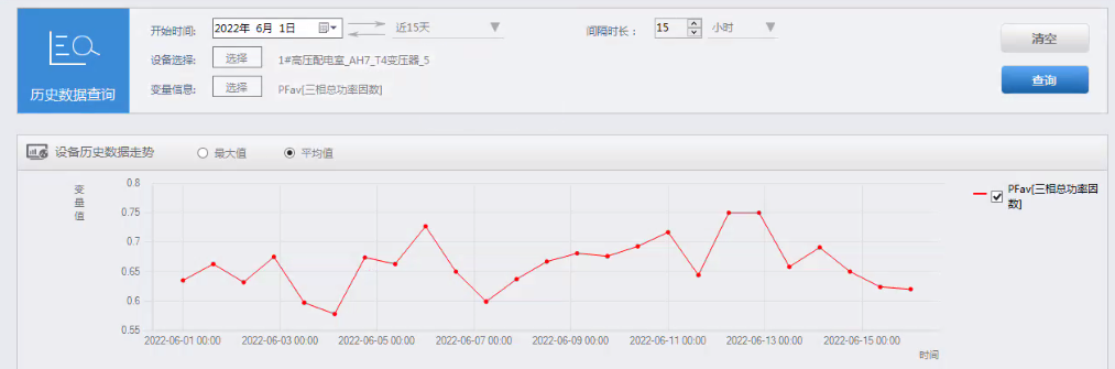 可以查询设备如变压器、空压机的历史运行数据,便于分析设备运行十分正常,以及了解设备的运行趋势。