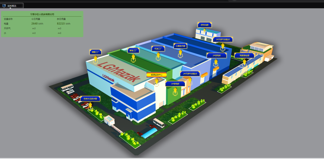 宁夏某机床有限公司年产立式加工中心和数控车床420台,产值2.2亿人民币,人均劳动生产率达160万人民币,高效率的生产得益于公司全面引入了全新的机床制造概念,即加工过程高度柔性化、复合化、精益化,制造及管理过程的网络化、信息化、智能化。 基于持续提升能源高效利用、经济绿色发展的高追求目标,2020年该公司部署了一套WEMS能源管理中心系统。